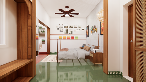 The challenge was clear from the start: how could we harmonize Kerala’s calm aesthetics, characterized by warm wood and intricate carvings, with the vibrant and bold elements of Chettinad design? The solution lay in our thoughtful approach to blending these styles while ensuring the space remained modern and functional.